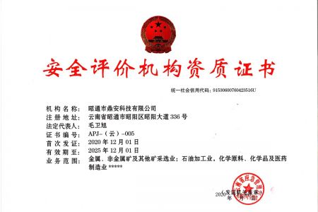 2003年11月10日,昭通市鼎安科技有限公司成立,初始主要從事第三方安全工程技術(shù)服務(wù),經(jīng)多年運(yùn)營,發(fā)展為多專業(yè)綜合科技平臺,為社會提供多種專業(yè)技術(shù)服務(wù)工作。 現(xiàn)公司注冊資金為1200萬元,公司法定代表人:毛衛(wèi)旭。公司主要業(yè)務(wù):安全評價、安全標(biāo)準(zhǔn)化評審、安全工程技術(shù)服務(wù);環(huán)境監(jiān)測、職業(yè)衛(wèi)生檢測、檢驗(yàn);法律訴訟及非訴訟服務(wù);司法鑒定、固定資產(chǎn)投資項目節(jié)能服務(wù);工程咨詢;工程測量測繪;安全教育培訓(xùn)等。是安全生產(chǎn)服務(wù)、安全教育培訓(xùn)機(jī)構(gòu),也是環(huán)境監(jiān)測和職業(yè)衛(wèi)生服務(wù)機(jī)構(gòu),同時也是綜合的檢測檢驗(yàn)、綜合科技平臺服務(wù)機(jī)構(gòu)。多年來為公、檢、法、司、軍、警、海關(guān)、仲裁、安監(jiān)、工礦商貿(mào)企業(yè)、社會團(tuán)體及個人提供多專業(yè)技術(shù)服務(wù)。